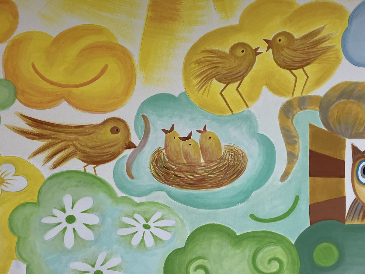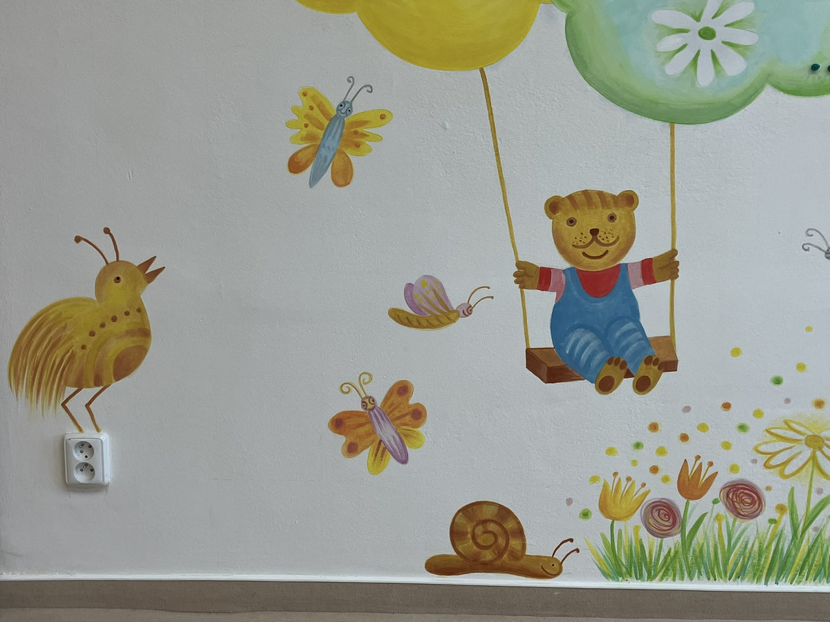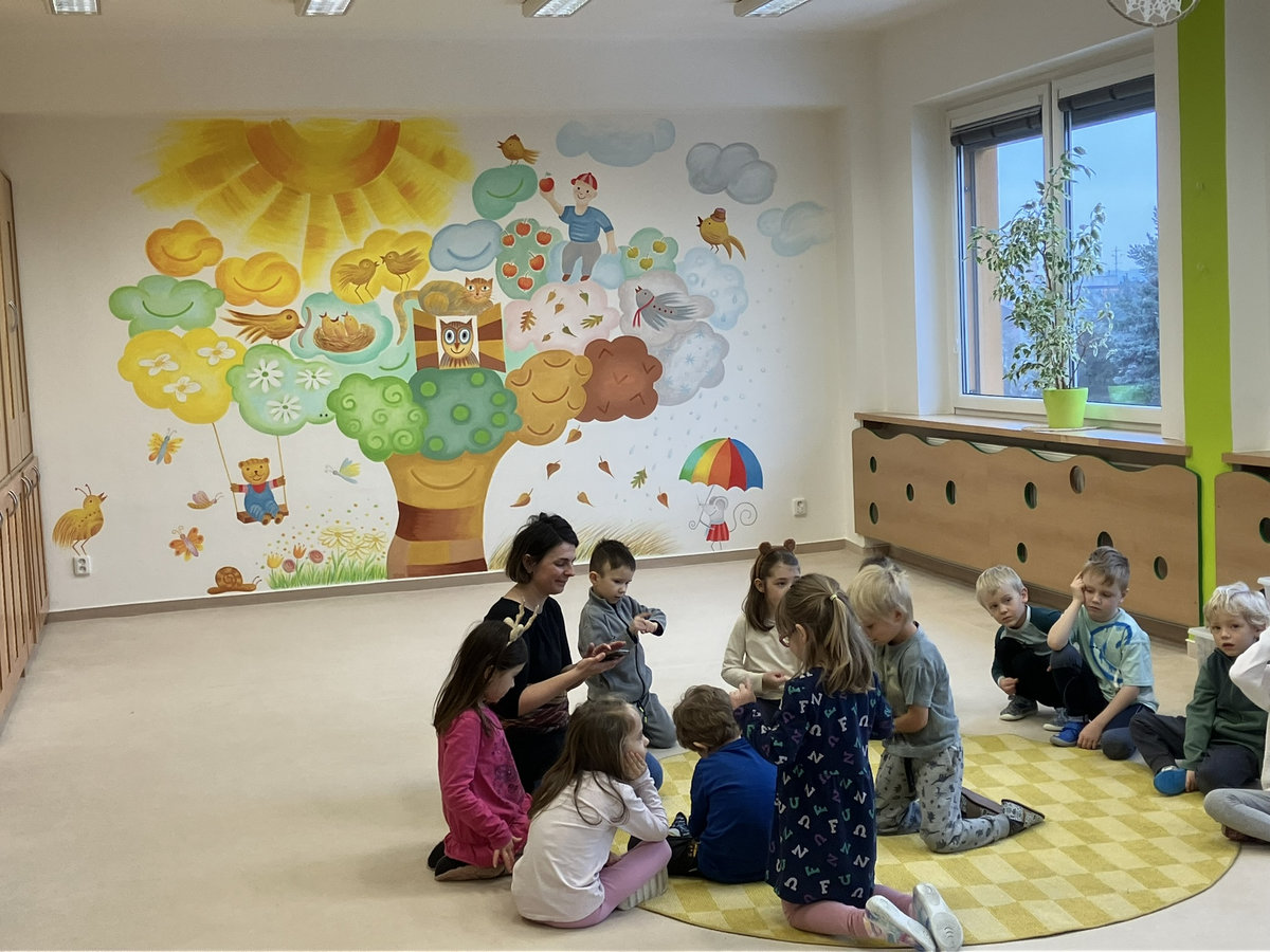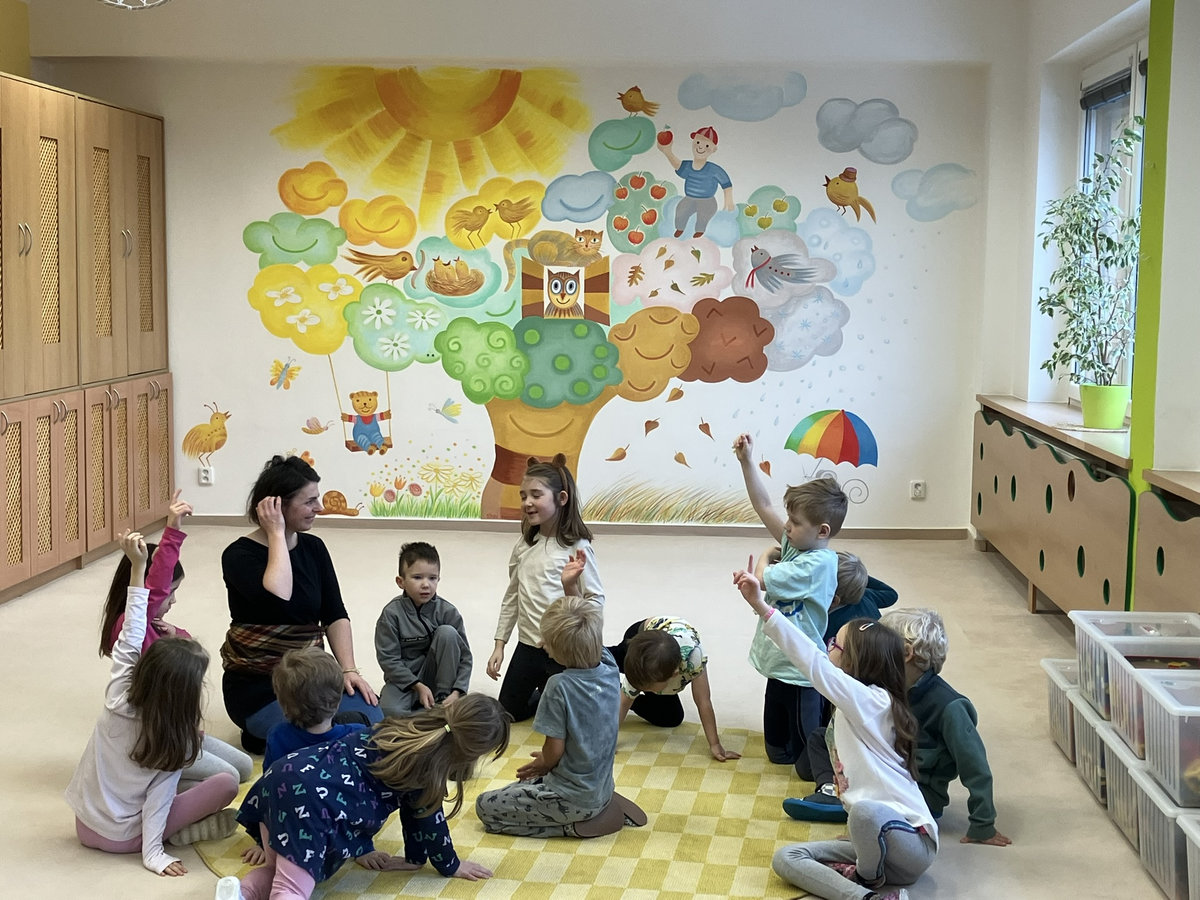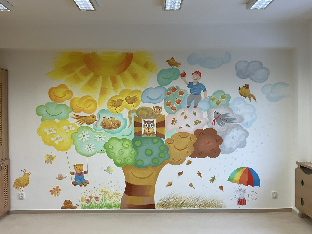 Mateřská škola Hřibská, Praha 10, výtvarný návrh a realizace malby stromu s použitím magnetické barvy, leden 2026
