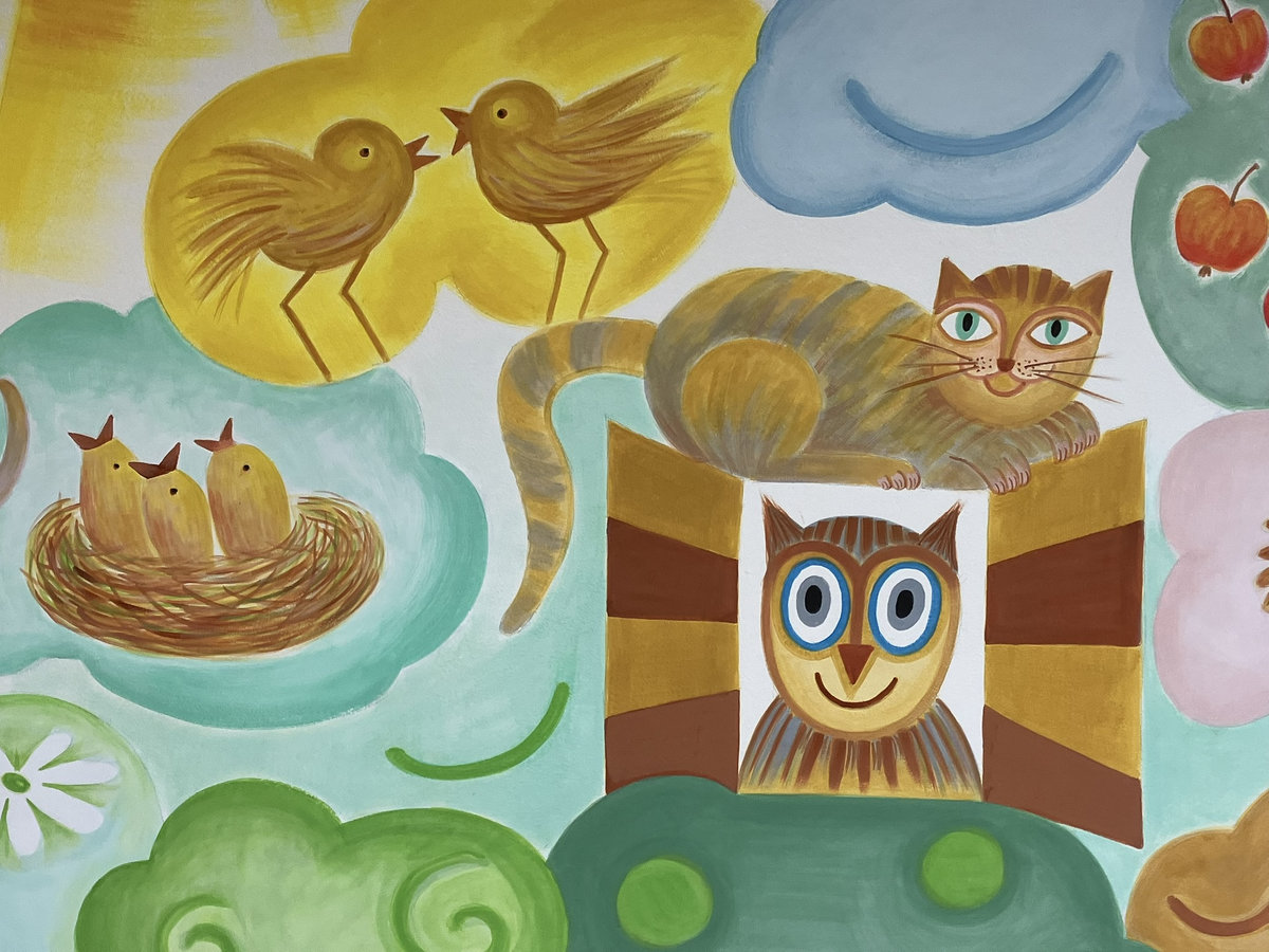 Mateřská škola Hřibská, Praha 10, výtvarný návrh a realizace malby stromu s použitím magnetické barvy, leden 2026
